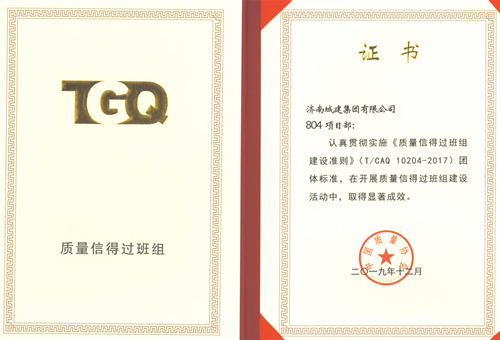 集團804項目部榮獲中國質(zhì)量協(xié)會(huì )“質(zhì)量信得過(guò)班組”