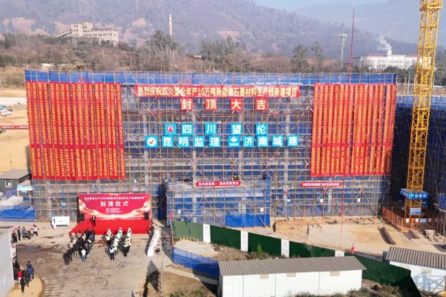 集團(tuán)四川攀枝花望倫年產(chǎn)10萬噸新能源石墨材料生產(chǎn)線新建項(xiàng)目主體結(jié)構(gòu)全面封頂
