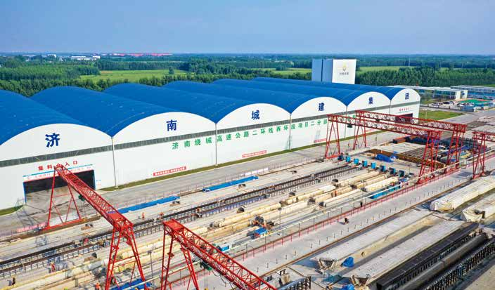 近年來,以裝配式為核心的建筑產(chǎn)業(yè)化快速發(fā)展,成為加快施工效率、提升企業(yè)全產(chǎn)業(yè)鏈整合能力、增強(qiáng)市場競爭力的重要推動力。集團(tuán)以大西環(huán)項目為試點(diǎn),遵循“因地制宜、節(jié)約土地、保護(hù)環(huán)境、安全可靠”的原則,投資 8000 萬元建設(shè)濟(jì)南繞城高速公路二環(huán)線西環(huán)段項目預(yù)制場站。預(yù)制場站占地面積約 180 畝,以信息管理、集約化管理為依托,高標(biāo)準(zhǔn)合理規(guī)劃場站布局,劃分出制梁區(qū)、鋼筋加工區(qū)、存梁區(qū)、保障區(qū)、提梁上橋區(qū)(裝車區(qū)〉和辦公生活區(qū)等區(qū)段,各區(qū)段布局合理,功能完備。其中,預(yù)制臺座總體布局為南北方向,共分為 3個預(yù)制區(qū),每個預(yù)制區(qū)左側(cè)為兩槽縱向排列預(yù)