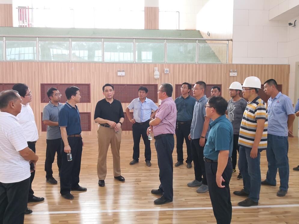 李國(guó)祥董事長(zhǎng)(左五)察看體育館建設(shè)