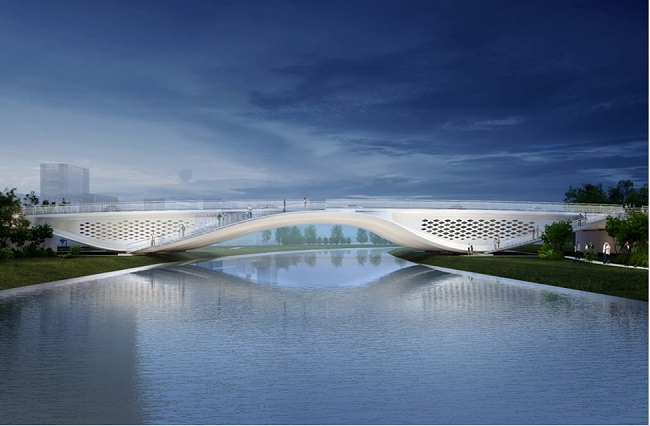 濟南新舊動能轉(zhuǎn)換先行區(qū)橫二路大寺河橋梁段由世界著名橋梁設(shè)計師Marc MIMRAM先生主設(shè)計,橋梁工程結(jié)構(gòu)為三跨梁拱組合鋼結(jié)構(gòu),全長418米,工程造價1.4億元,橋梁段長150.16米,采用鋼結(jié)構(gòu)梁拱組合體系一跨跨越大寺河,鋼結(jié)構(gòu)總鋼材用量約4197噸。項目融合泉城文化與太極元素,以“泉與太極”為設(shè)計理念,兼具功能性與藝術(shù)性。作為先行區(qū)核心景觀地標,橋梁的建成拓展了城市發(fā)展空間,推動濟南從“大明湖時代”邁向“黃河時代”,為起步區(qū)高質(zhì)量發(fā)展注入強勁動能。